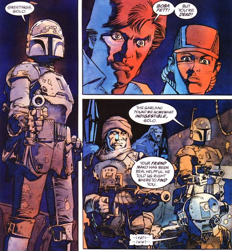 And some say he survived his supposed death in the new Boba show because some say they saw a button on his chest blinking. Who knows?